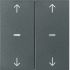 Abdeckung für Tastsensor-Modul 2fach mit Pfeil-Symbol S.1/B.x anthrazit.Abdeckung für Tastsensor-Modul 2-fach, mit klarer Linse. Unterputz-Installation, Material: Kunststoff, halogenfrei.
