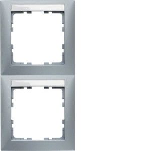 Rahmen 2fach senkrecht, mit Beschriftungsfeld, S.1, alu matt.Abdeckrahmen mit Beschriftungsfeld zur Verwendung von Abdeckungen und Unterputz Einsätze. Beschriftungsfeldhöhe für P-touch Band 6 mm ausgelegt. Material: Kunststoff, halogenfrei.