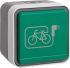 Steckdose Schutzkontakt mit grünem Klappdeckel und Symbol E-Bike AP W.1 grau.Steckdose Schutzkontakt® mit Klappdeckel AP, IP55, 16 A, mit Steckklemmen, mit einer Einführung für 2 Leitungen und einer Einführung für Leitung oder Rohr, vollflächige Dichtung unter dem Gehäuseboden zur Abdichtung der Gehäuserückseite, mit zufallendem Klappdeckel, manuell einrastbar, um den Schutzgrad IP55 zu erreichen, gut zugängliche, trichterförmige Montagelöcher in den Gehäusen, eine Wago 2-Leiter Verbindungsklemme für Verdrahtung beiliegend, zwei Einrastplätze für Wago 2-Leiter Verbindungsklemmen im Gehäuseboden, viel Platz zur Verdrahtung unter den Sockeln der Einsätze (Hohlboden), einfache Montage des Einsatzes im Gehäuse durch Einrasten, sichere Fixierung des Rahmens am Gehäuse über Bajonett-Schnellverschluss, Verbindungsklemmen nach VDE 0620, Bauart DIN 49440, Gehäuseschrauben und Klappdeckelfedern aus Edelstahl Rostfrei. Aufputz-Installation. Material: Kunststoff, Thermoplast, schlagfest.