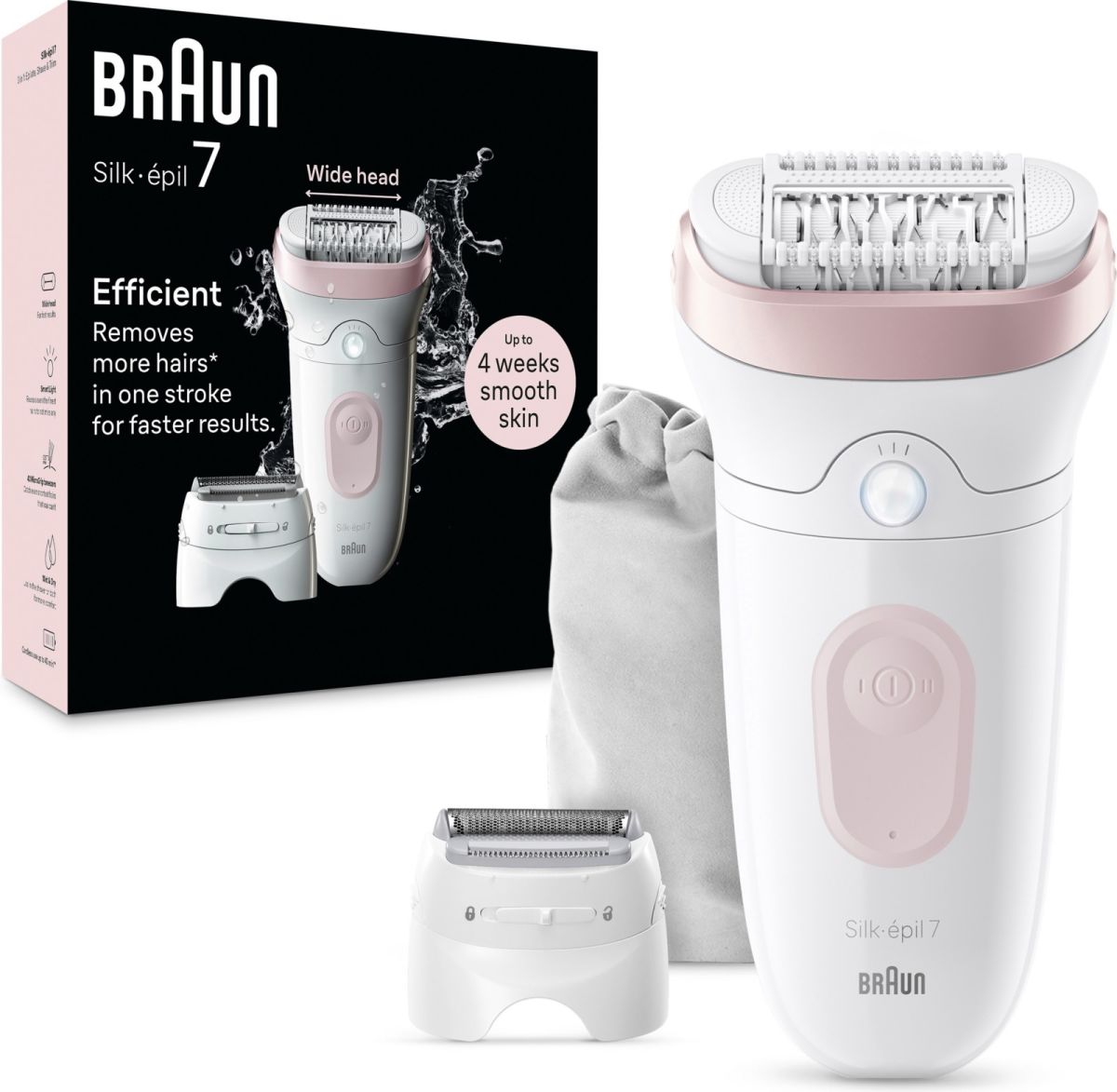 Mit dem Braun Silk-épil 7 bis zu einem Monat seidig-glatte Haut, überall und jederzeit. Der Wet&Dry-Epilierer ist mit einem breiten Aufsatz ausgestattet, der große Bereiche abdeckt und mehr Haare bei jedem Zug erfasst (verglichen mit dem Braun Silk épil 5). Dieser kabellose Braun Epilierer verfügt über die MicroGrip Pinzettentechnologie, die selbst kürzeste Härchen (0,5 mm) erfasst. Genieße seidig-glatte Haut wie aus dem Beautysalon und zusätzlichen Komfort dank des Massagerollen-Aufsatzes, der das Schmerzempfinden reduzieren kann. Du musst nicht mehr warten, bis deine Haare nachgewachsen sind, wie bei anderen Haarentfernungsprodukten (z. B. Wachs). Dieser Epilierer ist praktisch zu handhaben und macht aufwendige Haarentfernungen oder Terminvereinbarungen überflüssig. Tipp: Epiliere dich in der Badewanne oder unter der Dusche mit warmem Wasser für ein geringeres Schmerzempfinden. Besonders langlebig, über Jahre hinweg: Alle Epilierer von Braun werden in Deutschland hergestellt.