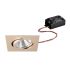 LED-Einbaustrahlerset, schaltbar, champagner matt, quadratisch. Ausgeführt in kompakter Bauform für werkzeuglose Schnellmontage zum Deckeneinbau. Set inkl. Konverter für 230 V-Netzspannung, schaltbar, Maße Konverter: L 68 x B 35 x H 21 mm: Einbaumontage, Montageort: Deckenmontage, Material: Aluminium / Polycarbonat, Schutzart raumseitig: nach DIN EN 60529: IP20, Schutzklasse: (EN 61140) II, Spannung: 230V AC 50Hz, Leistung: 7 W, Anzahl der Leuchtmittel / Fassungen: 1 Stück, Lichtstrom: 740 lm, Farbtemperatur: 3.000 K, Abstrahlwinkel: 38°, Verstellbarkeit: schwenkbar, Mit Betriebsgerät: Ja, Dimmbar: Nein, Art der Dimmung: schaltbar.