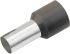Isolierte Aderendhülsen, Abmessungen nach DIN 46228, Teil 4, Farbreihe 1.Technische Daten, Werkstoff: Cu-ETP nach DIN EN 13600- Oberfläche: galvanisch verzinnt - Isolation Polypropylen - Temperaturbeständigkeit -35°C bis +105°C - Zum mühelosen Aufstecken auf feindrähtige Kupferleiter, verhindert Beschädigung und Aufspleisung. Querschnitt: 1 mm², Länge ohne Isolation L2: 12 mm