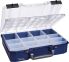 CarryLite 80 4x8 DLU, inkl. 12 Einsätze, mit Einlegefach für Dokumente. Sortimentskoffer inkl. Sandwich-Deckel mit U-Profilen die ein Verrutschen des Inhalts beim Transport verhindern, Sandwichdeckel mit Einlegefach, z. B. für bis zu 5 lose Blatt Papier à 80 g, ausgestattet mit Tragegriff und 2 Schiebeverschlüssen, 2 rote Markierungen an den Verschlüssen zeigen an, ob der Koffer korrekt geschlossen ist, inkl. 8 Stück Einsätze Typ BA8-1 und 4 Stück Typ BA7-1, Farbe raaco blau. Tragvermögen: 10 kg, Gewicht: 1.246 g