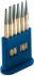 Durchtreibersatz mit Körner, 6-Teilig aus Chrom-Vanadium-Lufthärtestahl, Länge 120 mm, im Kunststoff-Behälter zum Durchschlagen von Blechen und dünnen Metallen, zum Splintentreiben und Versenken von Nägeln. Je 1 Stück 1-2-3-4-5 mm ø, Körner 120x10 mm.
