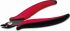 Elektronik-Seitenschneider, verstärkte Ausführung, ohne Schneidwate, Anstellwinkel 21 Grad, Länge 132 mm, für weiche Drähte bis 1,3 mm Durchmesser. Präzisions-Elektronikzange mit durchgestecktem Gelenk, gesenkgeschmiedete Ausführung hochpräzise Ausführung aus Spezialstahl, leicht selbstöffnend durch Doppelblattfedern, hohe Standzeit, Flächen fein geschliffen, mit ergonomischen Zwei-Komponenten Griffhüllen (in ESD oder 1.000 V Ausführung auf Anfrage)