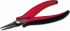 Mikro-Elektronik-Spitzzange, Backen gerade, gezahnt, 1,2 mm breit, Länge 152 mm. Ausführung aus einsatzgehärteten 3 mm-Werkzeug-Flachstahl. Schneidkanten präzesionsgeschliffen, selbstöffnend durch leichtgängige Spiralfelder, feinstbüniert, mit elastischen 2-Komponenten-Kunststoffgriffen (außer Elektronik-Kraft-Seitenschneider CIMCO-Artikelnr. 10 1054 und 10 1055)