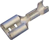 Flachsteckhülsen mit Rastzunge, nicht isoliert. Technische Daten: Werkstoff: Messing, blank, DIN 46340. Zum Einrasten in Gehäusen. Querschnitt: 0,5-1 mm²: Steckermaß: 6,3x0,8 mm