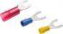 Quetschkabelschuhe, Gabelform Cu, isoliert. Technische Daten - Werkstoff: Cu-ETP nach DIN EN 13600 - Oberfläche: galvanisch verzinnt - Für zugentlastete Verbindungen - Isolation PA (Polyamid, Nylon), halogenfrei - Temperaturbeständigkeit -60°C bis +105°C, 600 V max.,- Easy Entry ermöglicht einfaches und schnelles Einführen des Leiters. Ausführung: Querschnitt: 0,5 - 1 mm², Bolzen-Ø: 6 mm, rot, D1: 1,6