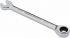 Knarren-Ringmaulschlüssel mit Feinstverzahnung für ratschendes Lösen oder Schnellanzug von Schrauben und Muttern in einem Zug. 72 Zähne stehen für hohe Performance und geringe Rückholwinkel bereits ab 5°. Links- oder Rechtslauf durch einfaches Wenden des Schlüssels, mit zusätzlicher Farbmarkierung. Gabelschlüssel-Werkzeug mit 15°-Kröpfung für ergonomisches Arbeiten. Aus Chrom-Vanadium-Stahl gesenkgeschmiedet, spezialgehärtet, hochglänzend poliert, vernickelt und hartverchromt. 12 mm