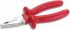 1.000 V Kombinationszange, tauchisoliert, VDE-geprüft. Griffe mit zweifarbiger Kunststoff-Tauchisolation für optimale Sicherheit. Bei Beschädigung der äußeren roten Isolationsschicht signalisiert die nun sichtbare untere orangefarbene Kunststoffisolation, dass nicht mehr eine 100-prozentige Sicherheit gemäß den Sicherheitsnormen gegeben ist. Kombinationszange nach DIN ISO 5746, eingelegtes Gelenk, mit induktiv gehärteter Präzisionsschneide (ca. 64 HRC), für alle Drähte, auch für Pianodraht, aus Spezialwerkzeugstahl, gezahnten Greiffflächen und gezahnter Aussparung (Brennerloch) Länge 160 mm (6"