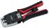 Einhand-Systempresszange Hebelübersetzte Presszange mit Ratschenmechanik und Druckpunktentriegelung mit einer Vielzahl auswechselbarer, durch zwei Befestigungsschrauben fixierter Pressprofileinsätze. Die ergonomisch geformte Crimpzange ist leicht und handlich zu bedienen. Über die Hebelwirkung des Griffs wird die integrierte Ratschenautomatik ausgelöst. Regulierbare Zwangsentriegelung gewährleistet optimale Crimpergebnisse. Alle Einsätze werden aus Carbon-Werkzeugstahl angefertigt. Die 17 verschiedenen Profile eigenen sich für nahezu aller Verpressungen von Kabelverbindern. Zangenkörper PROFI-CRIMP.