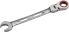 T120 FLEX Knarren-Ringmaulschlüssel mit Feinstverzahnung für ratschendes Lösen oder Schnellanzug von Schrauben und Muttern in einem Zug. 120 Zähne stehen für höchste Performance und minimalste Rückholwinkel bereits ab 3°. Ringschlüssel-Element um 2x90° schwenkbar für Arbeiten von oben oder in beengten Bauräumen. Links- oder Rechtslauf durch einfaches Wenden des Schlüssels, mit zusätzlicher Farbmarkierung. Das Gabelschlüssel-Werkzeug mit der individuellen entwickelten Flanken-Geometrie ermöglicht das Zurücksetzeten des Schlüssels in de Arbeitsebene- vergleichbar mit einer Ratschenfunktion ist kein Abheben des Gabelschlüssels erforderlich! Ergonomisches Griff-Design mit nur 3 mm Bauhöhe für hervorragende Kraftübertragung. Aus Chrom-Vanadium-Stahl, spezielgehärtet. Oberfläche vernickelt matt schwarz. SW 17 mm