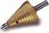 HSS-Stufenbohrer, speziell für Kabelverschraubungen in der Elektromontage, perfekt runde und zylindrische Löcher in verschiedenen Durchmessern, Zentrieren, Anbohren, Aufbohren und Entgraten in einem Arbeitsgang, geeignet für den Einsatz in Hand- und Ständerbohrmaschinen in Handwerk und Industrie, für Bleche und Platten, Profile und Rohre aus Stahl, Messing, Kupfer, Aluminium, V2A-Stahl, Kunststoff, Holz, etc. bis 3 mm Stärke. Aufnahmeschaft 12 mm Ø. Ausführung: HSS