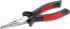 1.000 V Telefonzange mit geraden Backen nach DIN ISO 5745, eingelegtes Gelenk, mit induktiv gehärteter Präzisionsschneide (ca. 60HRC), lange, flach-runde Backen (Flachrundzange), gezahnte Greifflächen und gezahnte Aussparung (Brennerloch), mit Schneiden für harten und weichen Draht, 160 mm