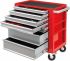 Werkstattwagen bestückt, extrem robust und belastbar. Eine gerippte Gummimatte schützt die oberste Ebene. Mit Teleskopvollauszug und ölbeständige Gummiränder mit einem ø von 125 mm. 8 Seitenaufnahmen zur Aufbewahrung, mit insgesamt 7 Schubladen (Innenmaß 640x417 mm): 1 Schublade mit den Maßen: 665x 44x50 mm, 4 Schubladen mit den Maßen: 665x445x70 mm, 2 Schubladen mit den Maßen: 665x445x168 mm. Max. Traglast je Schublade: 30 kg/280 kg gesamt. Bestückung: 12 Schraubendreher 1.000 V (PZ, Schlitz, Kombi), 14 Schraubendreher 1.000 V (TX, Präzision), 8 Zangen, 5 Presswerkzeuge, 12 Ringschlüssel, 12 Maulschlüssel mit Ratschenfunktion, 6 Schlagwerkzeuge, 9 Abisolierwerkzeuge, 9 Mess- und Schraubwerkzeuge, 1 Schaumstoff leer