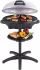 In Grillplatte integriertes Heizelement, stufenloser Temperaturregler, Antihaftbeschichtung, Fettauffangschale, abnehmbarer Deckel mit Halterung, Warmhalte- und Ablagerost, Kontrolllampe, abnehmbarer Standfuß, wärmeisolierte Griffe, abnehmbare Zuleitung, zerlegbar, 2000-2400 W, Gewicht: 8,5 kg