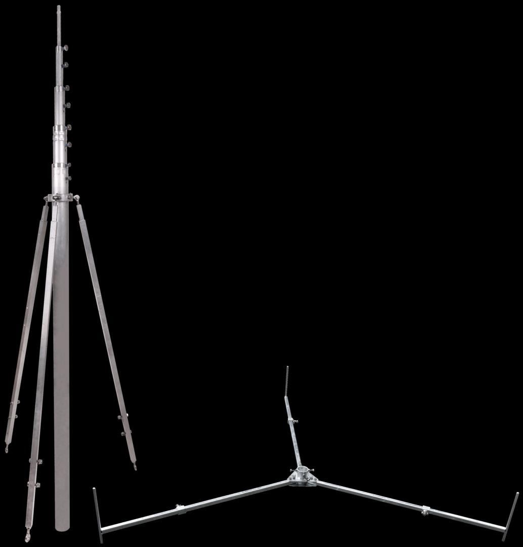 Teleskopierbare Fangstange freistehend mit klappbarem St/tZn Dreibeinstativ. Zum Schutz von größeren Dachaufbauten, mit Anpassung an die Dachneigung bis max. 10°. Die Fangstangen sind nach Eurocode 1 (DIN EN 1991-1-4 + DIN EN 1991-1-4/NA) für eine max. Böenwindgeschwindigkeit von 189 km/h dimensioniert. Ausführung mit Höhe 6500 mm.