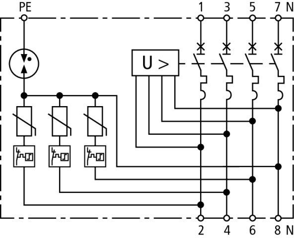 . Zum Schutz von Niederspannungs-Verbraucheranlagen vor transienten und temporären Überspannungen (SPD+POP). Zum Einsatz im Blitz-Schutzzonen-Konzept an Schnittstellen 0B-1 und höher.