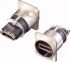 19pol. HDMI-Einbaubuchse in Vollmetall-Ausführung. Farbe: silber/schwarz. Abmessungen: 31 x 26 x 41mm.