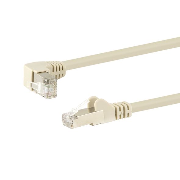 Cat.6 Patchkabel einseitig gewinkelt. Western-Stecker (8/8), gewinkelt + Western-Stecker (8/8). 1:1 belegt, folien- und geflechtgeschirmtes Kabel (S/FTP), mit paarig verseilten Adern (twisted pair), vergossenen Hauben und Knickschutz. Farbe: grau.