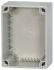 Einzelgehäuse Basis x, Material Polycarbonat, schlagfest, glatte Seiten, ohne Vorprägungen, für beliebige Bohrmaße, Wandstärke = 6,5 mm, RAL 7035, Direktmontage ohne weiteres Zubehör an der Wand möglich