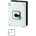 EIN-AUS-Schalter, Sortiment: EIN-AUS-Schalter, Typkenner: T5, mit schwarzem Knebel und Frontschild, 8-polig, Schutzart: IP65, Bauform: Oberflächenmontage, Schaltwinkel: 90 °, Schaltverhalten: rastend, Frontschild: 0-1, Bemessungsbetriebsleistung AC-23A, 50 - 60 Hz 400 V: P = 55 kW, Bemessungsdauerstrom: Iu = 100 A, 4 Baueinheit(en), Normen und Bestimmungen: IEC/EN 60947, VDE 0660, IEC/EN 60204, Lasttrennschalter nach IEC/EN 60947-3