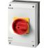 Hauptschalter, Sortiment: Hauptschalter, Wartungsschalter, Typkenner: P3, Stopp-Funktion: Notfall-Abschaltfunktion, mit rotem Drehgriff und gelbem Sperrkranz, Hinweise: UL/CSA, Information zum Lieferumfang: Vom Benutzer montierter Hilfsschalter oder Neutralleiter., 3-polig, Schutzart: IP65, Bauform: Oberflächenmontage, Bemessungsbetriebsleistung AC-23A, 50 - 60 Hz 400 V: P = 55 kW, Bemessungsdauerstrom: Iu = 100 A, Normen und Bestimmungen: IEC/EN 60947, VDE 0660, IEC/EN 60204, CSA, UL, Lasttrennschalter nach IEC/EN 60947-3