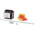 Hauptschalter, Sortiment: Hauptschalter, Wartungsschalter, Typkenner: P3, Stopp-Funktion: NOT-AUS-Funktion, mit rotem Drehgriff und gelbem Sperrkranz, Hinweise: mit Metallwelle für eine Schaltpulttiefe von 400 mm, Information zum Lieferumfang: Hilfskontakt oder Neutralleiter kundenseitig montiert., 3-polig, Verriegelungsvorrichtung: In der Position 0 (Aus) verriegelbar, Schutzart: Front IP65, Bauform: rückseitiger Einbau, Bemessungsbetriebsleistung AC-23A, 50 - 60 Hz 400 V: P = 55 kW, Bemessungsdauerstrom: Iu = 100 A, Normen und Bestimmungen: IEC/EN 60947, VDE 0660, IEC/EN 60204