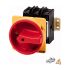 Hauptschalter, Sortiment: Hauptschalter, Wartungsschalter, Typkenner: P3, mit rotem Drehgriff und gelbem Sperrkranz, 3-polig, Verriegelungsvorrichtung: In der Position 0 (Aus) verriegelbar, Schutzart: Front IP65, Bauform: rückseitiger Einbau, Bemessungsdauerstrom: Iu = 30 A, Normen und Bestimmungen: UL489