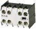 Hilfsschalterbaustein, mit zwangsgeführten Kontakten, Schaltglieder nach EN 50005, Schaltglieder nach EN 50012 sind zu bevorzugen. Kombinationen der Ausführung E entsprechen EN 50011 und sind zu bevorzugen. Funktion: für Standardanwendungen, 4-polig, Anschlusstechnik: Schraubklemmen, Bemessungsbetriebsstrom AC-15 220 V 230 V 240 V: Ie= 4 A, Bemessungsbetriebsstrom AC-15 380 V 400 V 415 V: Ie= 2 A, Kontakte S = Schließer: 4 S, Montagetyp: Frontbefestigung, verwendbar für: DILEM-10(-G)( ), DILEM-01(-G)( ), DILEM-4(-G)( ), DILER40(-G), DILER31(-G), DILER22, DILEEM-10(-G)( ), DILEEM-01(-G)( )