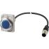 Leuchtmelder, Sortiment: RMQ Compact Solution, Komplettgerät, Bauform: flach, Verbindungstyp: Kabel (schwarz) mit M12A-Stecker, 4-polig, Kabellänge: 1 m, Farbe Linse: blau, Farb-LED: blau, Bemessungsbetriebsspannung LED: 24 V AC/DC, Schutzart: IP66, IP67, IP69K (vorne), IP65 (hinten), Anbindung an SmartWire-DT: nein, Normen und Bestimmungen: IEC/EN 60947-5-1, VDE 0660