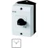 Polumschalter, Sortiment: Steuerschalter, Typkenner: T0, mit schwarzem Knebel und Frontschild, Kontakte: 4, Schutzart: IP65, Bauform: Oberflächenmontage, Schaltfunktion: 2 Drehzahlen, 2 getrennte Wicklungen, Schaltwinkel: 90 °, Schaltverhalten: rastend, ohne 0-Stellung, Frontschild: 1-2, Bemessungsbetriebsleistung AC-23A, 50 - 60 Hz 400 V: P = 5,5 kW, Bemessungsdauerstrom: Iu = 20 A, 2 Baueinheit(en), Normen und Bestimmungen: IEC/EN 60947, VDE 0660, IEC/EN 60204, Lasttrennschalter nach IEC/EN 60947-3