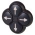 Positionstaste, Sortiment: RMQ-Titan, Einzelgerät, Bauform: Tasten vorstehend, tastend, Beschreibung: 4-fach, Tasten mechanisch nicht gegeneinander verriegelt, Beschriftung: 4 Richtungspfeile weiß, schwarze Knöpfe, Schutzart: IP66, Frontring Schwarz, Anbindung an SmartWire-DT: ja, mit RMQ-SWD-Anschaltungen, Frontabmessung: 55 x 55, Normen und Bestimmungen: IEC/EN 60947, VDE 0660