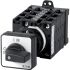Umschalter, Sortiment: Steuerschalter, Typkenner: T3, mit schwarzem Knebel und Frontschild, Kontakte: 12, Schutzart: Front IP65, Bauform: rückseitiger Einbau, Schaltwinkel: 90 °, Schaltverhalten: rastend, ohne 0-Stellung, Frontschild: 1-2, Bemessungsbetriebsleistung AC-23A, 50 - 60 Hz 400 V: P = 15 kW, Bemessungsdauerstrom: Iu = 32 A, 6 Baueinheit(en), Normen und Bestimmungen: IEC/EN 60947, VDE 0660, IEC/EN 60204, CSA, UL, Lasttrennschalter nach IEC/EN 60947-3