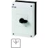 Wendeschalter, Sortiment: Steuerschalter, Typkenner: T5B, mit schwarzem Knebel und Frontschild, Kontakte: 5, Schutzart: IP65, Bauform: Oberflächenmontage, Schaltwinkel: 45 °, Schaltleistung: federnd, mit 0-Stellung, mit 2-seitigem Rückzug nach 0, Frontschild: 1>0<2, Bemessungsbetriebsleistung AC-23A, 50 - 60 Hz 400 V: P = 30 kW, Bemessungsdauerstrom: Iu = 63 A, 3 Baueinheit(en), Normen und Bestimmungen: IEC/EN 60947, VDE 0660, IEC/EN 60204, CSA, UL, Lasttrennschalter nach IEC/EN 60947-3