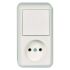 Kombination Universalschalter und Steckdose ohne Schutzkontakt, Farbe: reinweiß, (Aus-/Wechselschalter), Schalter 10 A 250V AC, Steckdose 16 A 250V AC, Für Aufputzmontage, Schutzart IP 20, mit Grundplatte, für Montage auf brennbarem Untergrund geeignet. Schraubklemmen: Klemmbereich für Kupferleiter 1,5 mm und 2,5 mm , für den sicheren Anschluss von Aluminiumleitern 2,5 mm ohne Vorbehandlung.