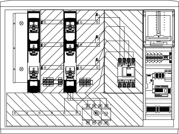 Wandlerschrank Freiluft. Gehäuse: -Polyesterschrank A850-3, Oberfläche gerippt, Farbe RAL 7035, Schutzart IP 54, Schutzklasse ll -Scharniertüre mit Schwenkhebelverschluss für 2 Profilhalbzylinder -Kundenzylinder eingebaut, inklusive 2 Schlüsseln. Außenmaß BxHxT: 1445x1065x322 mm. Ausstattung Leistungssteil: -Netzform: TT -Schienensystem E-Cu 30x10 mm, 185 mm, inkl. Wandlerlaschen 170x30x10 mm nach DIN 42600 -bestückt mit NH-Sicherungslastschaltleisten für VNB-Anschluss -maximal 2 VNB Zugänge möglich, Leerplätze mit plombierbarer Leerfeldabdeckung -Sicherungslastschaltleiste NH2/1x3-polig und Lasttrennschalter 4-polig 250 A für Kundenanschluss -Kuppelschalter für Anschluss Einspeiser (z.B. AC-Sammler oder Wechselrichter) -Wandlerfeld mit plombierbarer transparenter Abdeckung -Strom-und Spannungspfad vorverdrahtet -Spannungspfadsicherung nach Spezifikation des Verteilnetzbetreibers -Sicherungselement Heizung -NA-Schutz und Kuppelschalter (Leistungsschalter) 4-polig nach VDE-AR-4105 -Feld 300 mm für Netzsicherungsmanagement -Anschlussraum mit Berührungsschutzabdeckung -Verdrahtung zum Messschrank 7 m Länge inklusive. Anschluss: -Sicherungslastschaltleiste NH2/M12 max. 240 mm² (Kabelschuh Breite max. 43 mm) -Lasttrennschalter M10 für Kabelschuh DIN 46235, max. 240 mm² -Kuppelschalter M12 für Kabelschuh DIN 46235,max. 240 mm². Sockel: Sockel DIN 3, Tiefe 320 ist separat zu bestellen! Hinweis: -Messteil TEN in extra Schrank ist separat zu bestellen! Bestückung Leistungsteil VNB / Kunde: 1x NH2 (3p,M12) / 1x Lasttrennschalter 1x Leistungsschalter (Kuppelschalter)