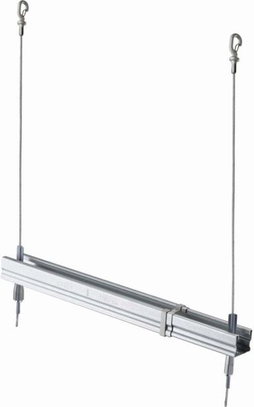 Die vormontierte Abhängelösung beinhaltet eine teleskopische Montageschiene, zwei Stahlseile mit Haken und zwei CADDY SPEED LINK Verschlüsse. Lässt sich auf die erforderliche Länge ausziehen und mit einem Federklip fixieren. Die teleskopische Montageschiene mit Strutprofil über die gesamte Länge erlaubt die Verwendung von Standard-Strutbefestigungselementen überall zwischen den Seilabhängungen. Trägt bis zu sieben 2"