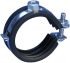 Schnellverschluss-Gelenkrohrschelle mit Gewindekombimutter und Schallschutzeinlage. Einfacher Schließmechanismus, M8-Schraube und EPDM-SBR-Gummischalldämmung. Für Rohre von 48 bis 52 mm.