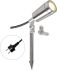 Die V4A-Edelstahl Leuchte kann entweder mittels des montierten Edelstahl-Stativs direkt auf dem Untergrund, oder optional mit dem mitgeliefertem Erdspieß im weichen Untergrund montiert werden. Am Strahler befindet sich eine 1,7m lange Anschlussleitung mit einen Schutzkontaktstecker. Der Erdspieß hat eine Länge von 195mm.
