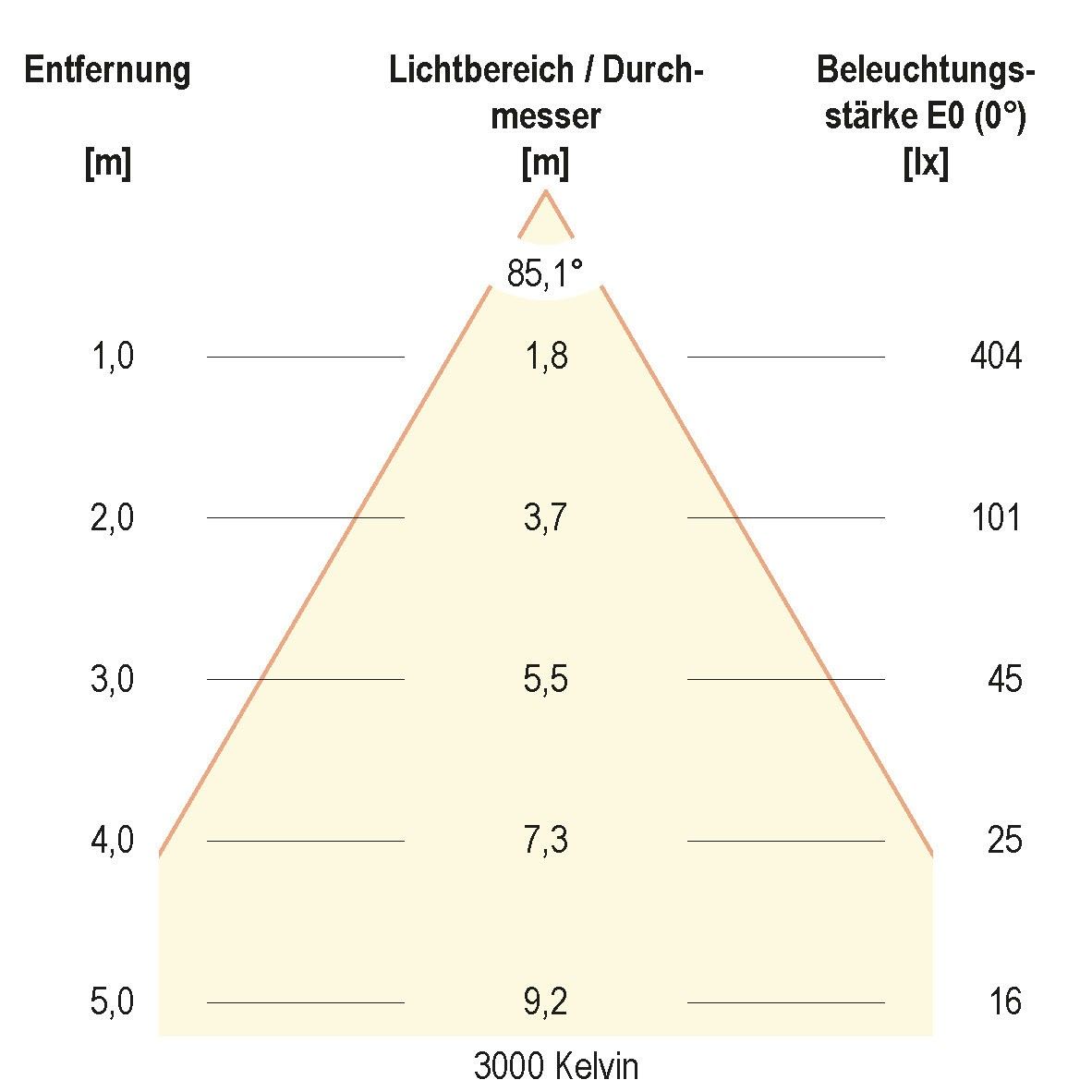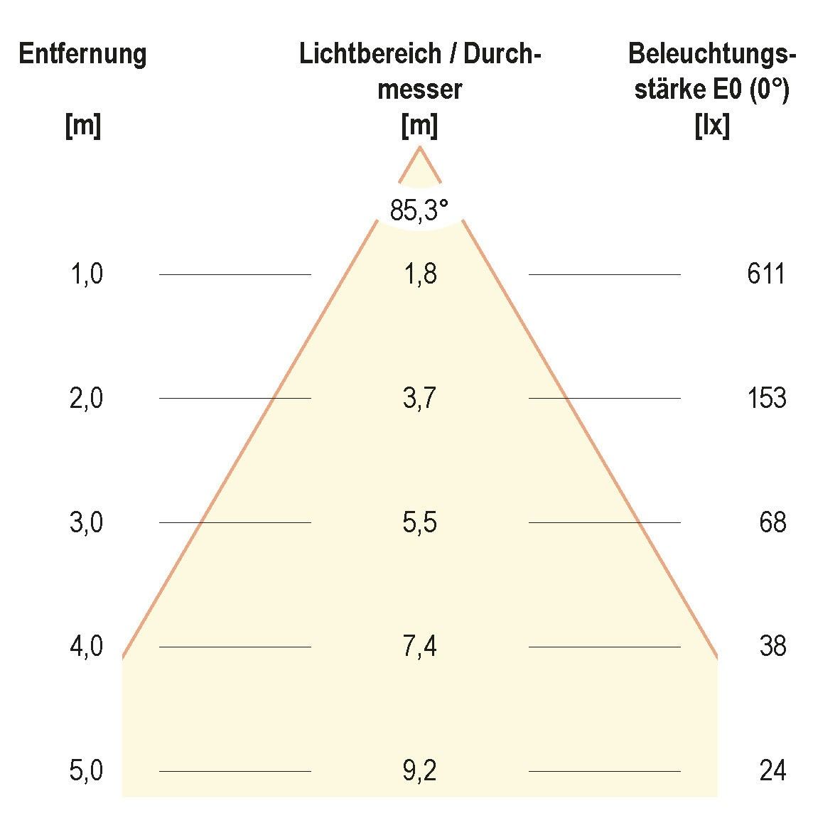 | Ausstrahlungswinkel | extrem breitstrahlend >80° |