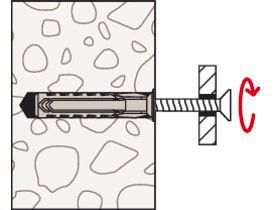 Der fischer Spreizdübel SX Plus ist durch seine 4-fach Spreizung der Spezialist für Vollbaustoffe wie Beton, Kalksandstein und Mauerwerk. Die speziellen Fixierflügel sorgen für eine Vorfixierung der Schraube, wodurch diese bei Überkopf Anwendungen nicht zusätzlich festgehalten werden muss. Diese Schraubenfixierung ermöglicht dem Anwender einen flexiblen und komfortablen Setzvorgang. Der flexible Dübelrand verhindert zudem ein Tieferrutschen des Dübels in das Bohrloch für eine sichere Montage. Die mitgelieferten Rundhaken sind optimal auf den fischer Spreizdübel SX Plus abgestimmt. Das hochwertige Material aus Nylon gewährleistet dauerhaft sicheren Halt in einer Vielzahl von Voll- und Lochbaustoffen.