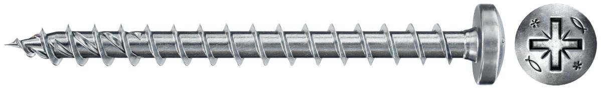 Die fischer PowerFast FPF II PZF BC ist eine galvanisch verzinkte, blau passivierte Schraube mit Vollgewinde und Antrieb Kreuzschlitz PZ. Mit dem Halbrundkopf eignet sie sich für Verbindungen von Metall auf Holz, beispielsweise bei der Befestigung von Metallbeschlägen, Winkeln oder Balkenschuhen. Das durchgängige Gewinde über die gesamte Schraubenlänge sorgt für eine optimale Kraftübertragung.