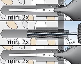 Der fischer Highbond-Anker dynamic FHB-A dyn wird aus hochkorrosionsbeständigem Stahl hergestellt. Der kraftkontrolliert spreizende Verbundanker wird mit dem Highbond-Spezialmörtel FIS HB verarbeitet. Beim Anziehen der Sechskantmutter werden die Konen der Ankerstange in die Mörtelschale gezogen, die sich gegen die Bohrlochwand verspannt. Der Injektionsmörtel FIS HB schließt beim Setzvorgang den Ringspalt im Anbauteil und gewährleistet eine optimale Lastverteilung. Dadurch können dynamische Schwell- und Wechsellasten aufgenommen werden. Der fischer Highbond-Anker dynamic FHB-A dyn ist ideal geeignet, um in Tunneln beispielsweise Schilderbrücken oder Strahlventilatoren zu befestigen.