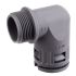 Kunststoff Schnellverschraubung Winkel 90° RQW1-M, IP 66 einteilig, metrisches Außengewinde, konisch dichtend, für ROHRflex Wellschläuche Material: Kunststoff (PA), Farbe: grau (auch in schwarz lieferbar) Temperaturbereich: -40°C ...+120°C Zulassungen: VDE geprüft EN/IEC 61386-23 / UL 1696 CSA 22.2 UR-File-no E86359 / NFPA 130 - ASTM E 162-E 662 SMP 800-C / Lloyds Register of Shipping / Gost, Eigenschaften: beständig gegen Öl und Benzin / silkon-, cadmium und halogenfrei / weitgehend säure- und lösungsmittelbeständig