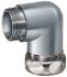 Metall-Sicherheitsverschraubung 90° Winkel USW-M, IP 65 geeignet für Metallschutzschläuche FLEXAgraff-PU-AS / FLEXAgraff-PU-F metrisches Außengewinde, inkl. Innentülle, Dichtring und O-Ring, Verschraubungsgehäuse mit Sechskantschlüsselfläche Material: Gehäuse Messing vernickelt Temperaturbereich: -40°C ... +125°C Eigenschaften: hoher Staub- und Flüssigkeitsschutz / kraftschlüssige Verbindung von Schlauch und Verschraubung / einwandfreie Erdung / Abdeckung der Schlauchenden / vibrations- und zugfest