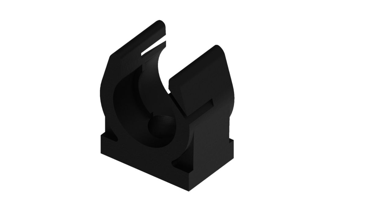 FIPSPLIT® Kunststoff-Befestigungsclip 2CNPA aus speziell formuliertem Polyamid 6, halogenfrei, zur Befestigung von teilbaren Wellrohren. Seitlich angebrachte Schlitze in den Klammern ermöglichen bei Bedarf eine zusätzliche Sicherung der Wellrohre mit Kabelbinder.