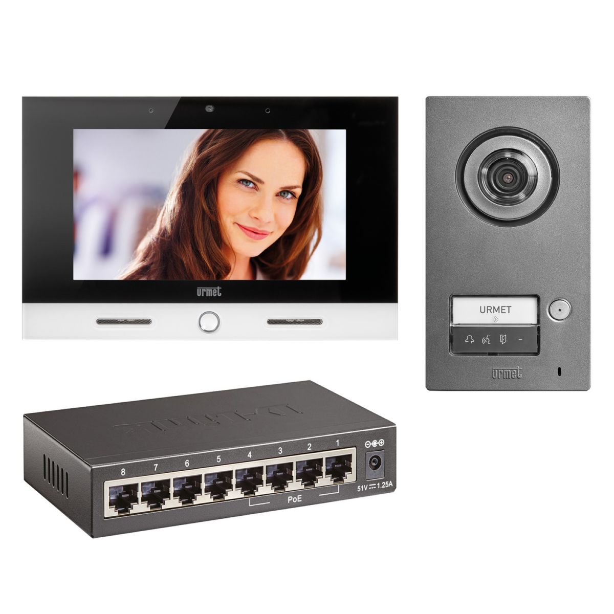 Das Basis Set IPercom 1060/633 ist eine Voll-IP Kommunikationslösung für ein Einfamilienhaus. Es wir kein zentralisierter Server für dieses IP-System benötigt, das System kann entweder als dediziertes Netzwerk aufgebaut oder in ein vorhandenes Netzwerk