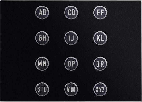 Alphabetisches Tastenmodul, Serie ALPHA für 2-Draht-Video Bussystem 2VOICE und der IPercom-Technologie. Dieses alphabetische Tastaturmodul verfügt über 12 Tasten, die eine Hintergrundbeleuchtung besitzen. Das Modul kann als alphabetische Tastatur im 2V