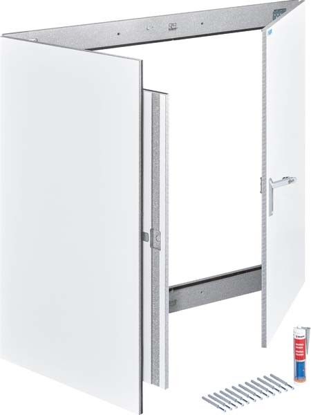 Brandschutz-Wandaufsatztür, univers, 30min, 1345x1445x51mm, IP42.Elektro-Wandaufsatztür F30/ I30 zur vollflächigen Wandmontage auf Massivwand zur Sicherung von Flucht- und Rettungswegen. Prüfungen: Brandkammertest bei einer amtlichen Materialprüfanstalt wurde durchgeführt. Geeignet für die klein- bis großformatige Abschottung von Elektro-Einbauwandverteilern in Rettungswegen, sowie zur revisionierbaren Abschottung von Installationsschächten gemäß MLAR und MBO. Baustoffe nach den Anforderungen der Klassifizierung A2-s1 d0 der DIN EN 13501-1 werden eingehalten. Allgemeine bauaufsichtliche Zulassungen (DIBt): Feuerwiderstandsklasse entsprechend einer Feuerwiderstandsdauer nach DIN 4102-2 (F30) und in Anlehnung an DIN 4102-11 ( I30 ). Wandaufsatztüren aus unbrennbaren Brandschutzplatten nach DIN 4102-1 bestehend aus einem Ausgleichsrahmen mit zugelassenen Befestigungsmaterialien direkt auf der Wand und Tür. Tür ein- oder zweitürig mit Anschlag DIN rechts mit Öffnungswinkel 180°. Tür mit Schwenkhebel, Türverschluss über Schubstange mit 2-Punkt-Verriegelung und vorbereitet für DIN Halbzylinder. Umlaufende Rauch- und Brandschutzdichtungen mit selbstaufschäumend im Brandfall. Hinweise: Zusätzliche Ausgleichsrahmen möglich. Das Gehäuse kann mit verschiedenen Oberflächen (Dekor/Lack/Furnier/Metall) ab Hersteller versehen werden.